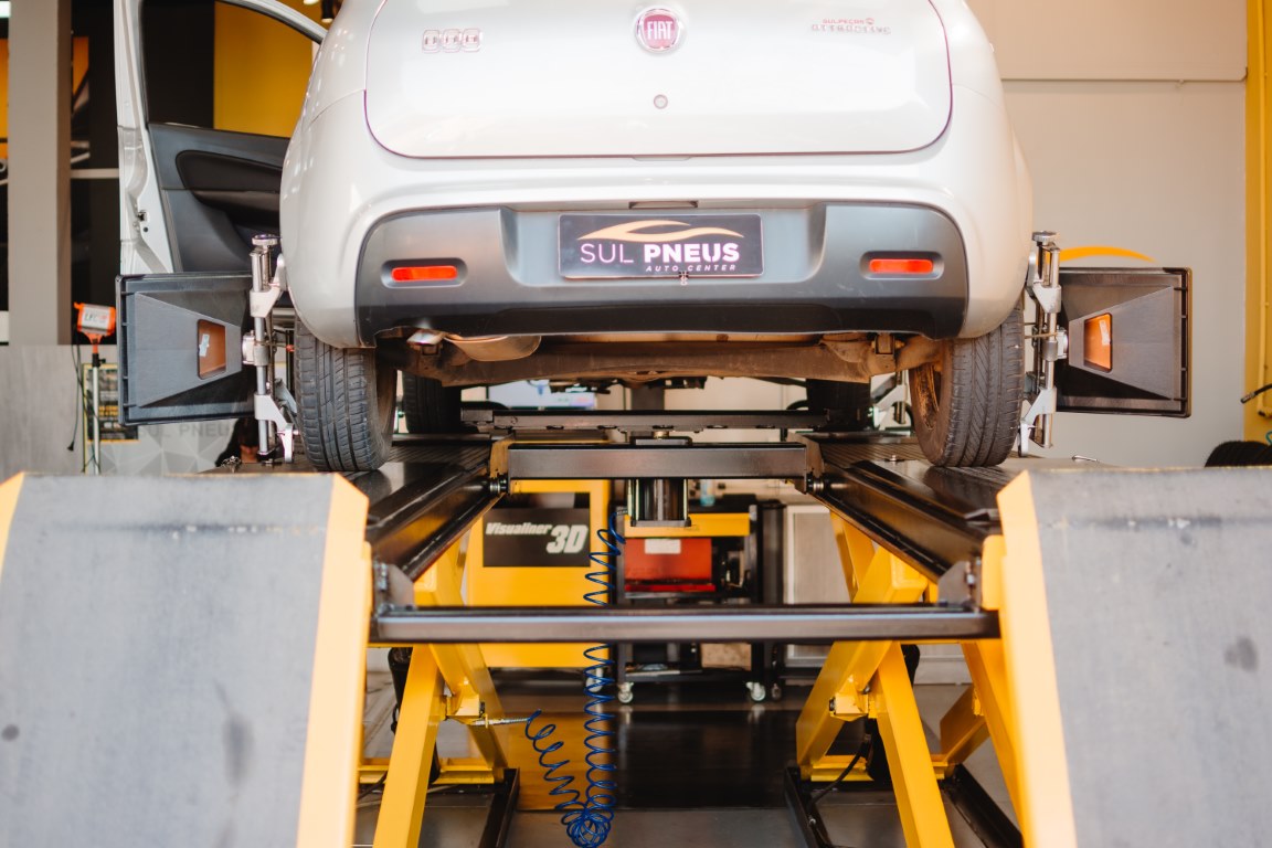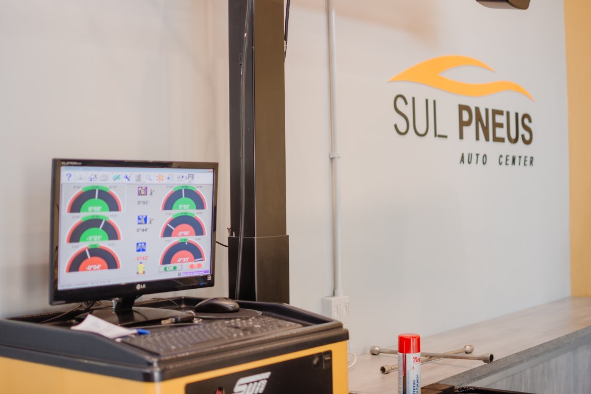 A Geometria 3D, realizada pela Sul Pneus, permite fazer o alinhamento das rodas de forma extremamente precisa, dentro dos parâmetros originais de fábrica.